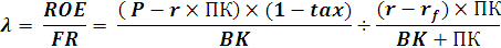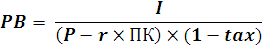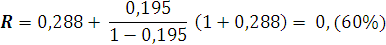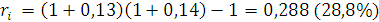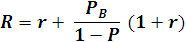 Далі, використавши нижченаведену формулу, визначаємо відсоткову ставку за інвестиційний кредит з урахуванням ймовірності (ризику) втрати позичених коштів.