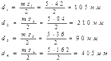 Т.е условие выполнено. Тогда определим диаметры делительных окружностей колес: