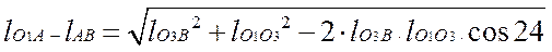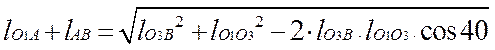 Расстояние между осями вращения кривошипа 1 и коромысла 3