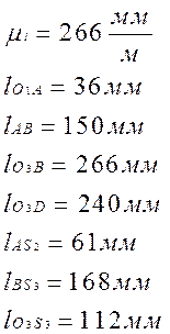 Определим масштабы, которые вычислим с учетом заданного максимального перемещения (хода) толкателя h . Масштаб перемещения точки В: