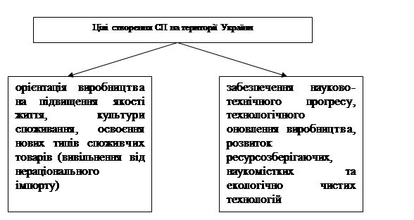 Слід відзначити взаємозв’язок основних цілей. По-перше, залучення передової закордонної технології сприяє розв’язанню завдання додаткового виробництва продукції та вивільненню України від імпорту (хоча б частково); по-друге, не байдуже, на якій технологічній основі забезпечується приріст виробництва споживчих товарів; по-третє, визначені цілі реалізуються, як правило, в комплексі. Відповідно до цього, визначаються рівні пріоритетності створення та діяльності СП. Наприклад, такими пріоритетами можуть бути: подолання залежності України від імпорту; структурна перебудова економіки, створення сучасної галузевої структури; виробництво товарів широкого вжитку.
