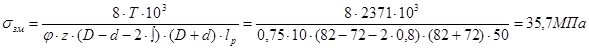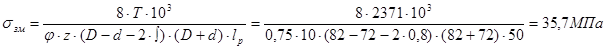 где d – внутренний диаметр шлицев; l – расчетная длина, путем использования которой учитывается неравномерность распределения крутящего момента вдоль ступицы зубчатого колеса, насаженного на шлицевый вал с зазором:
