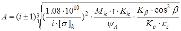где k - коэффициент, для прямозубых колес равный 6, для косозубых — 3,6; a - угол зацепления передачи, b – ширина зубчатого венца, d – делительный диаметр.