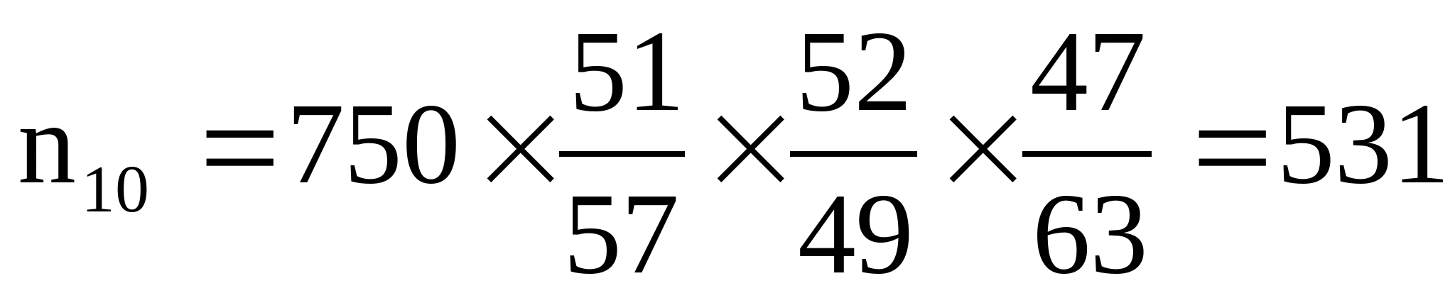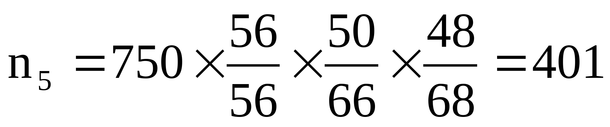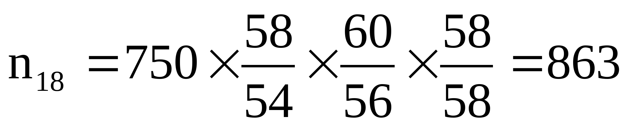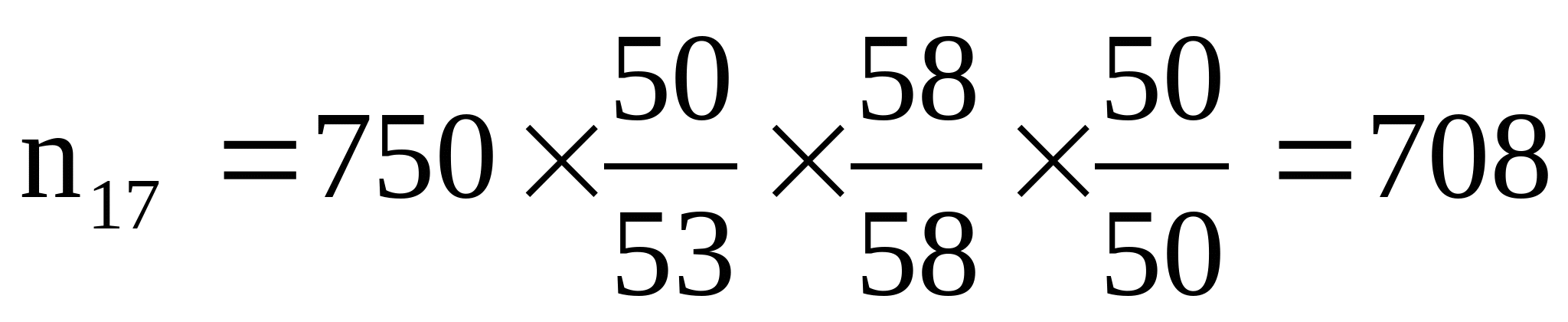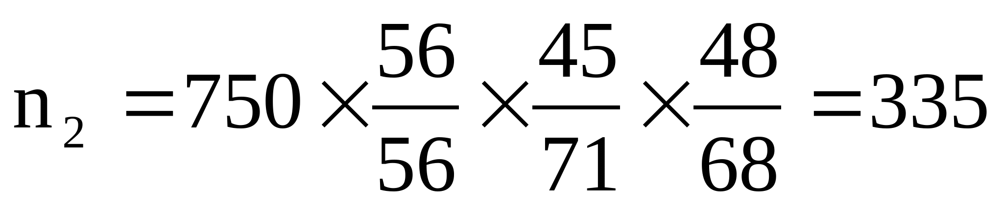 По [2] принимаем стандартное значение знаменателя ряда чисел оборотов φ = 1,06. При = 747 об/мин , = 286 об/мин по [2] записываем стандартный ряд чисел оборотов: n1 = 280 об/мин., n2 = 300 об/мин., = 315 об/мин., = 335 об/мин., = 355 об/мин., = 375 об/мин., = 400 об/мин., = 425 об/мин., = 450 об/мин., = 475 об/мин., = 500 об/мин., = 530 об/мин., = 560 об/мин., = 600 об/мин., = 630 об/мин., = 670 об/мин., = 710 об/мин., = 750 об/мин.