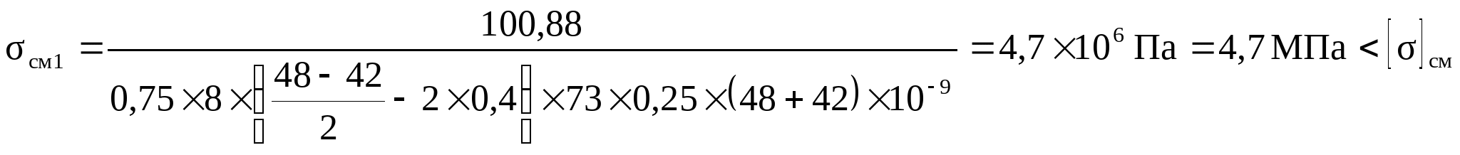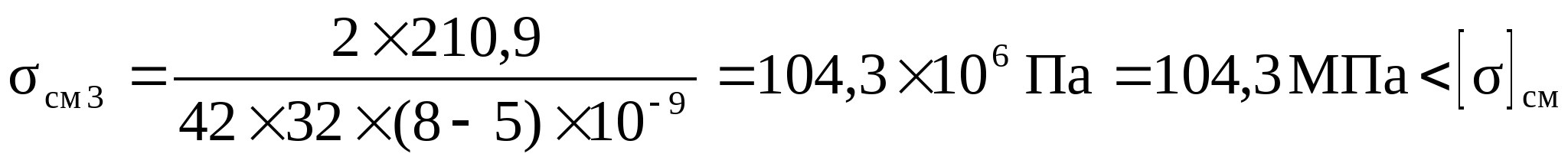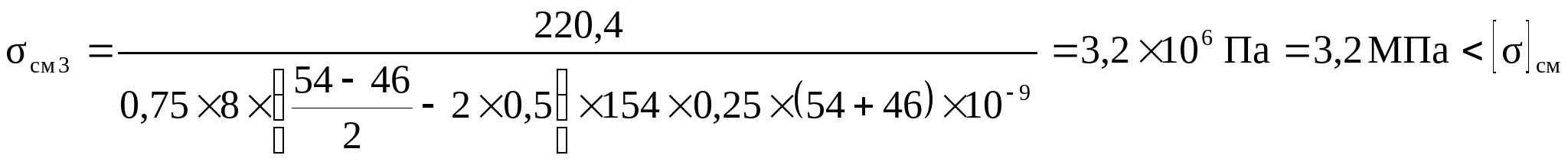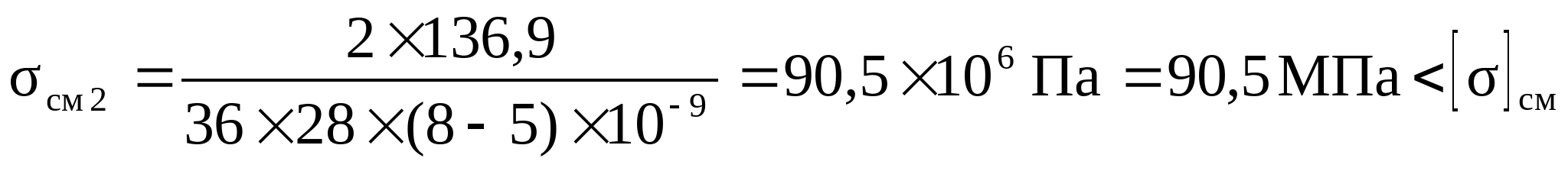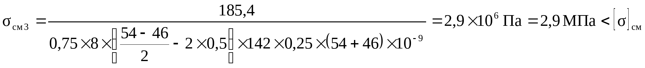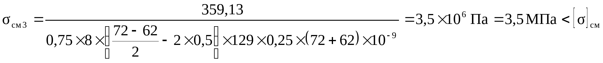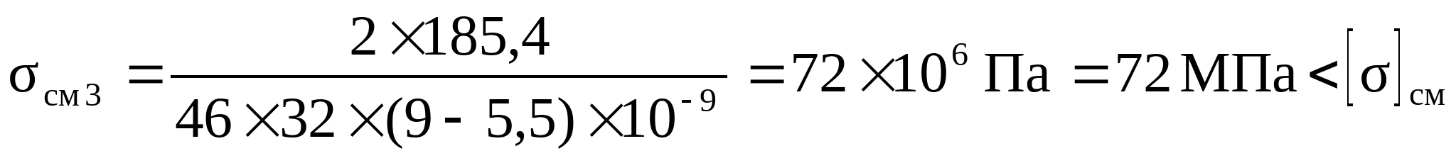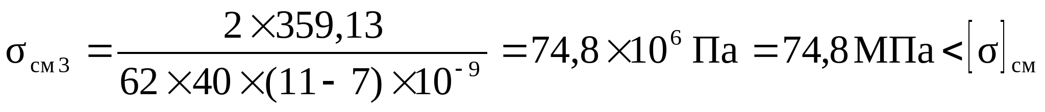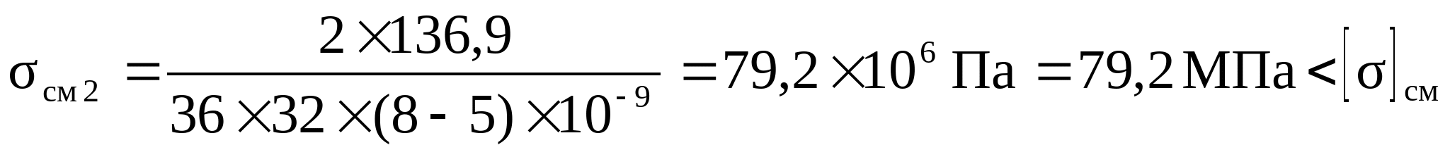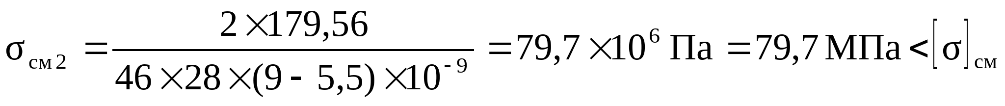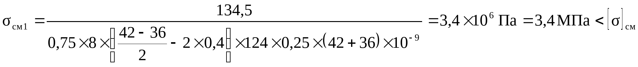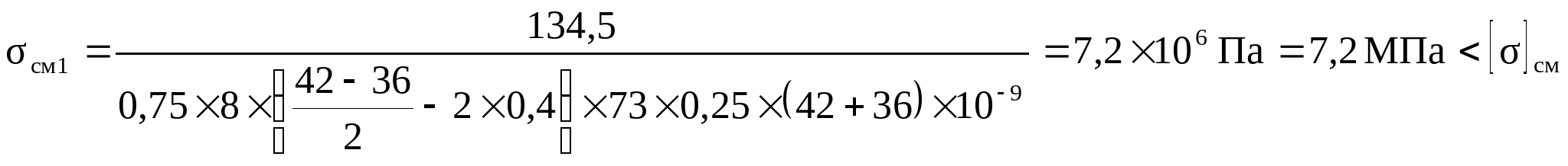 , (6.3)  где М - передаваемый крутящий момент, Нм; Z - число шлицев; - расчетная поверхность смятия, мм2; , (6.4)