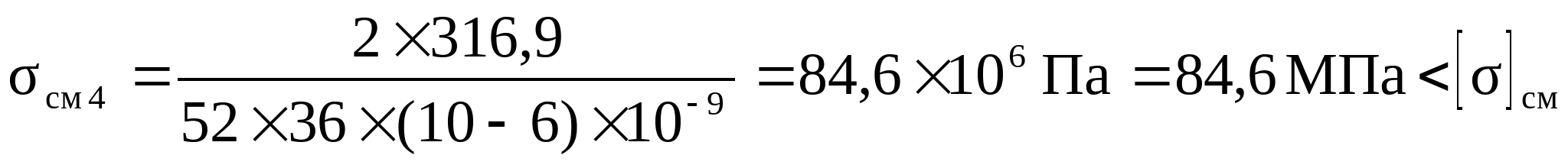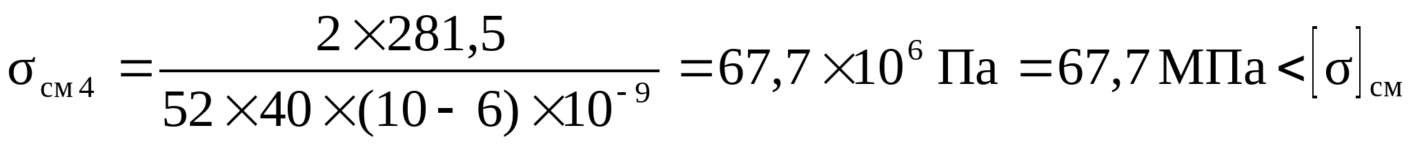 На четвертом валу для зубчатых колес 12, 14, 16 назначаем призматические шпонки 16Ч10Ч40 по ГОСТ 23360-78 . Проверку соединения на смятие производим по формуле (6.1):