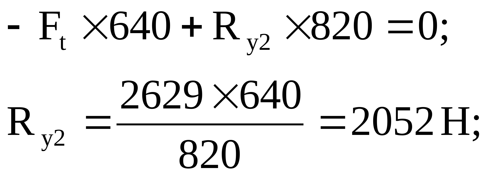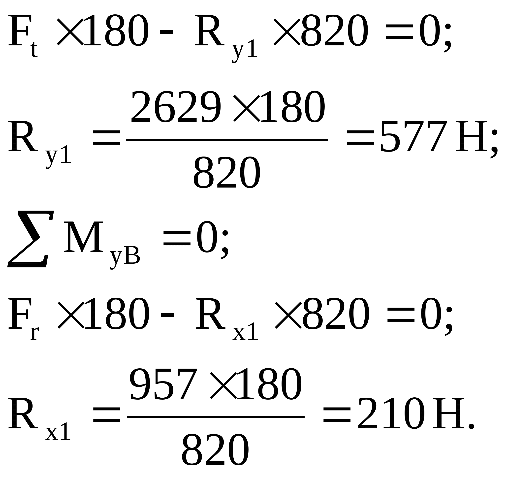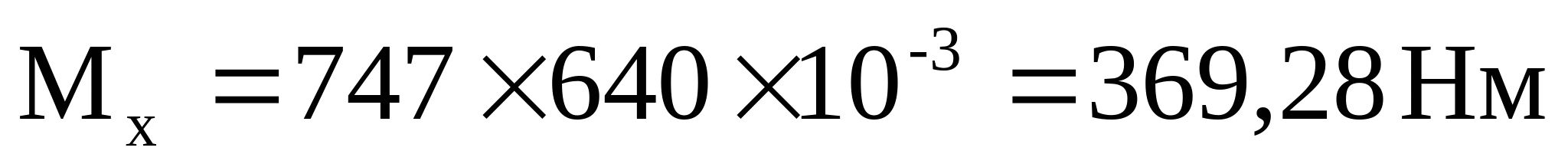 По полученным данным строим эпюры моментов, которые представлены на рисунке 4 .         Rx1 A B Rx2      Ry1 Ft Ry2       a = 640 Fr b = 180                                               My, Нм                  134,4 Mx, Нм      369,28 Рисунок 4- Эпюры моментов