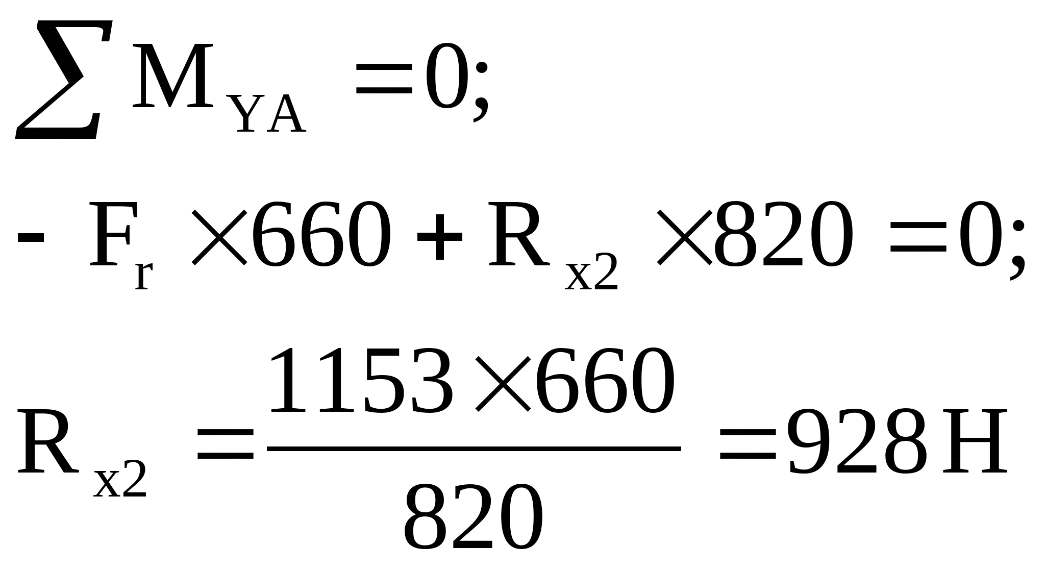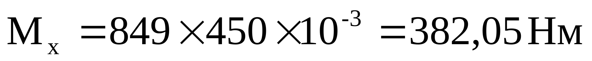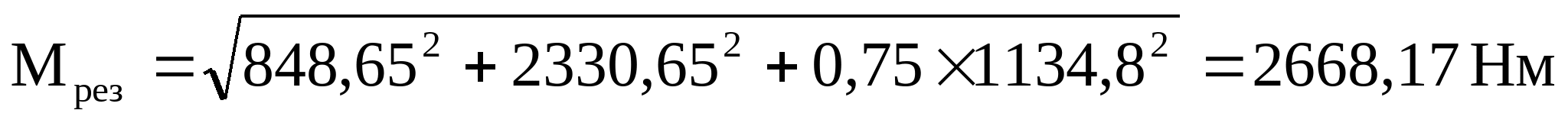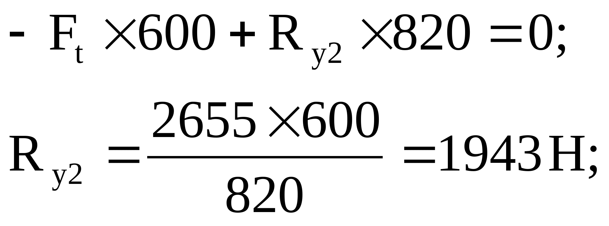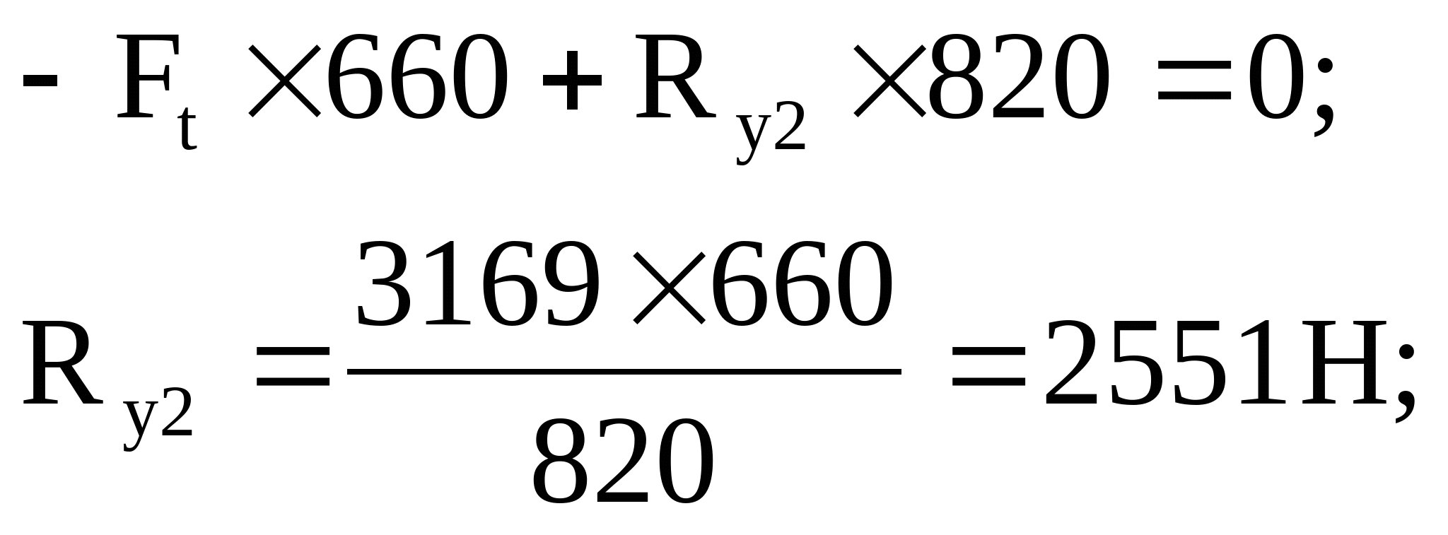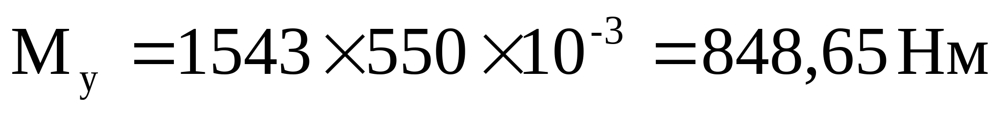 По полученным данным строим эпюры моментов, которые представлены на рисунке 4 .         Rx1 A B Rx2      Ry1 Ft Ry2       a = 550 Fr b = 500                                               My, Нм                  848,65 Mx, Нм      2330,9 Рисунок 4- Эпюры моментов