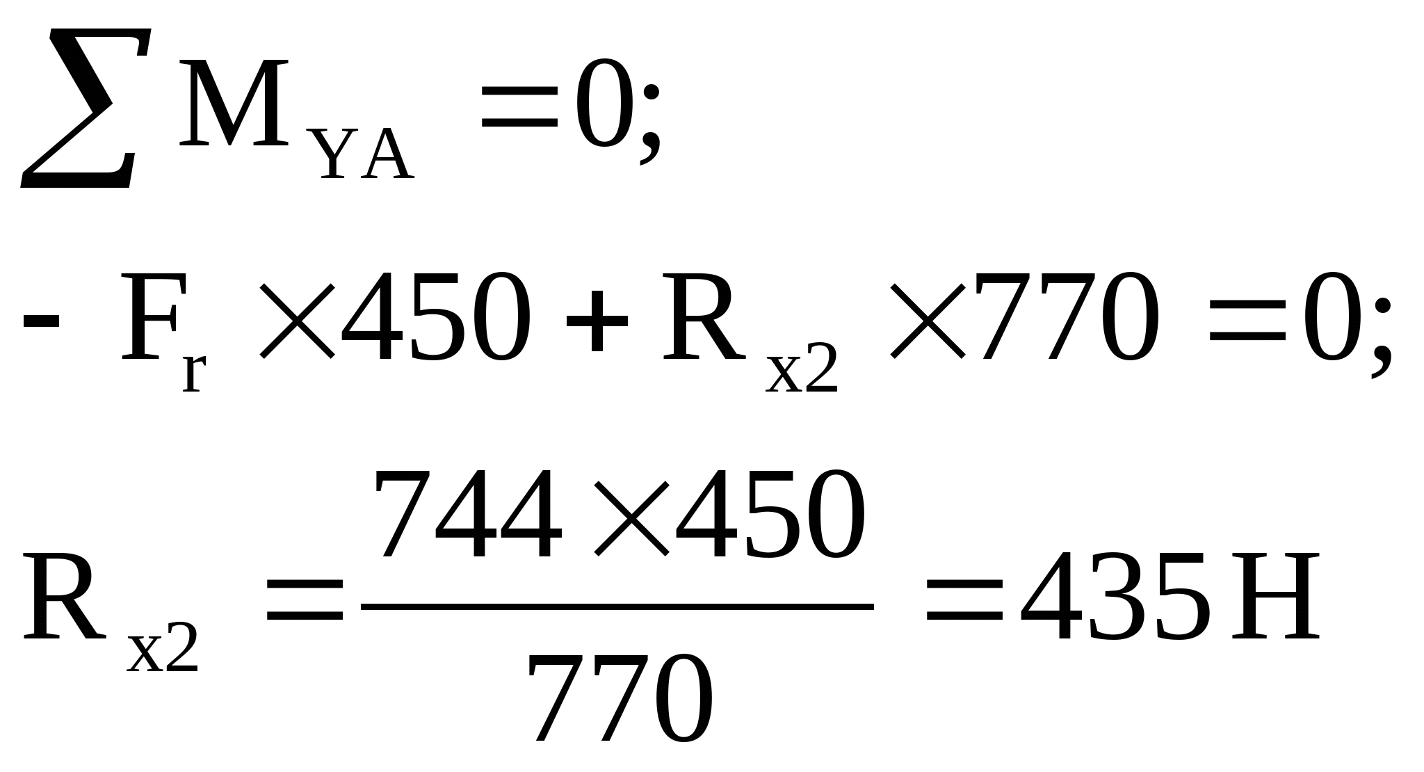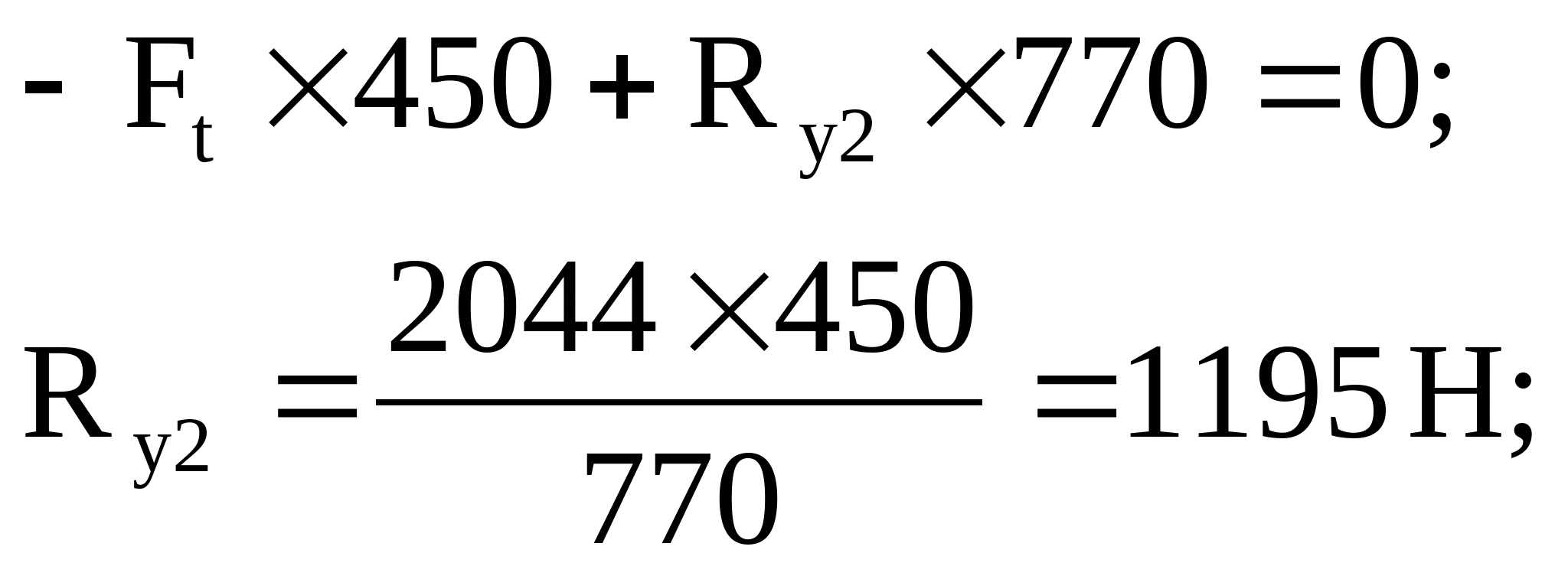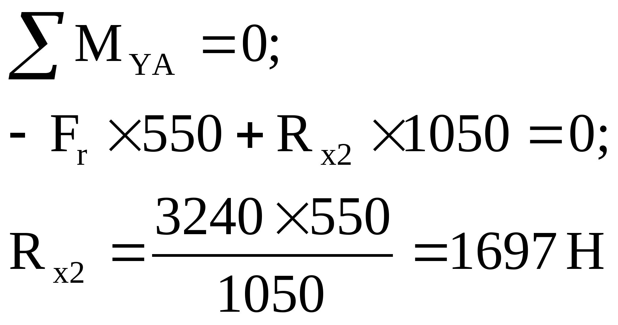 По полученным данным строим эпюры моментов, которые представлены на рисунке 4 .         Rx1 A B Rx2      Ry1 Ft Ry2       a = 550 Fr b = 500                                               My, Нм                  848,65 Mx, Нм      2330,9 Рисунок 4- Эпюры моментов