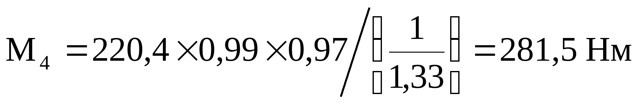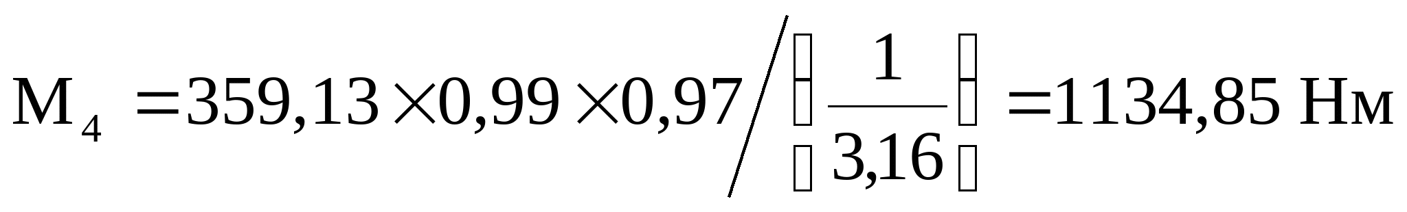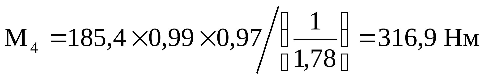 . Крутящий момент на четвёртом валу по формуле (4.5):