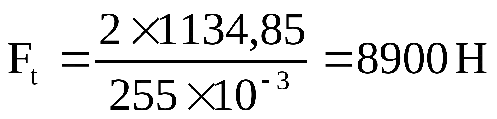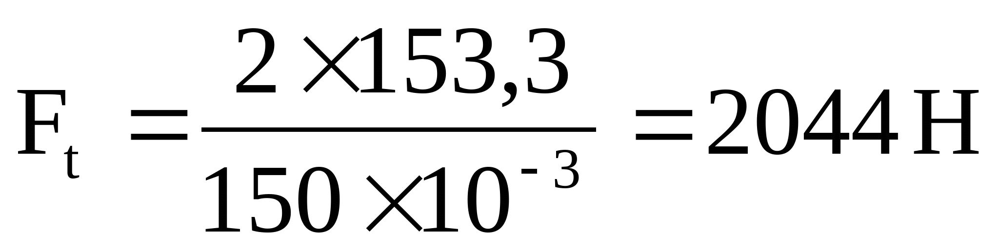 Уточнённый расчет проводим для наиболее нагруженного вала (с наибольшим крутящим моментом). Выбираем колесо с наименьшим диаметром на этом валу и для него строим эпюры моментов, которые возникают при вращении. Окружное усилие, возникающее в зацеплении: