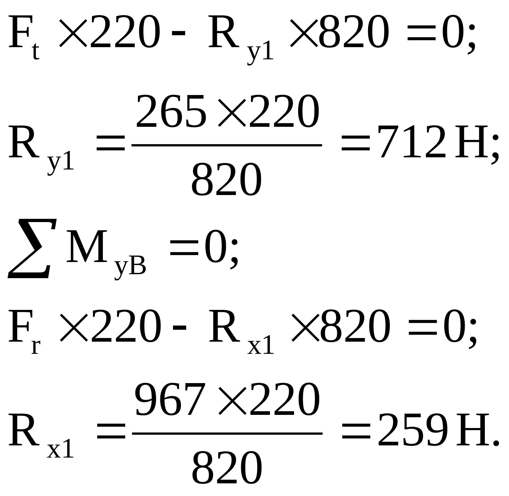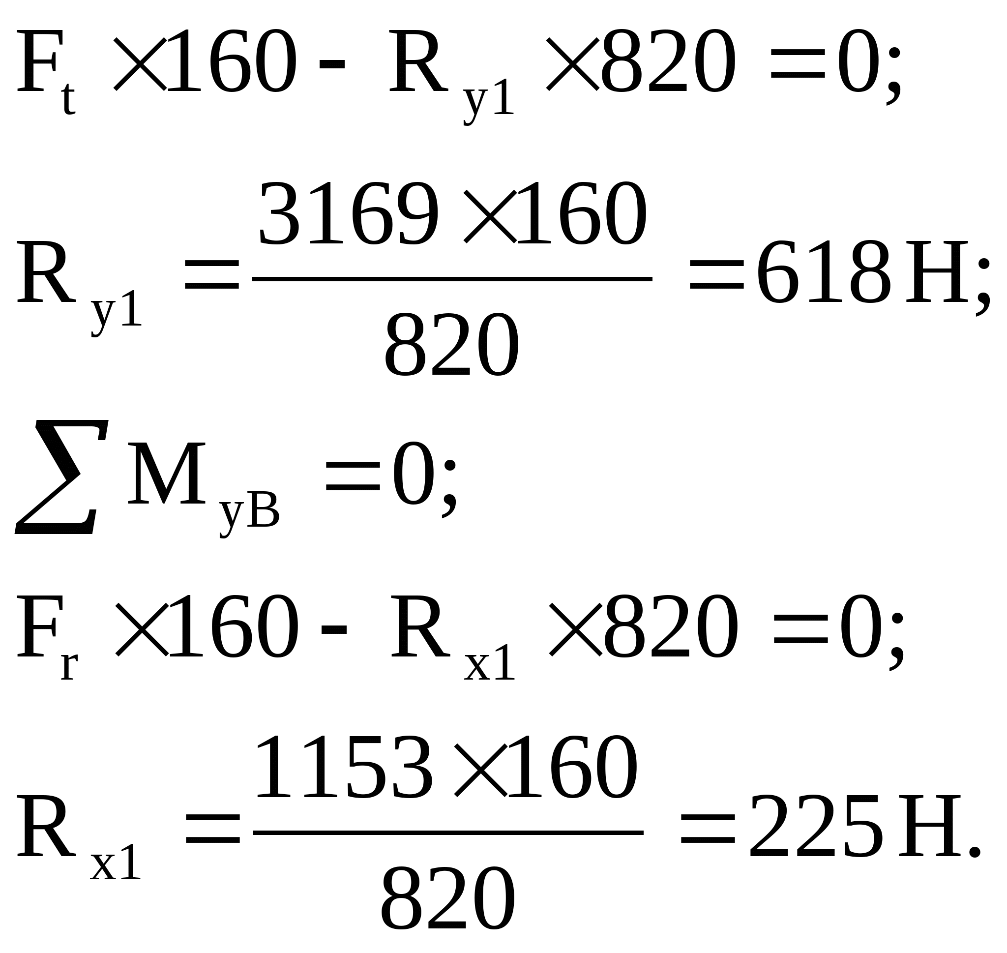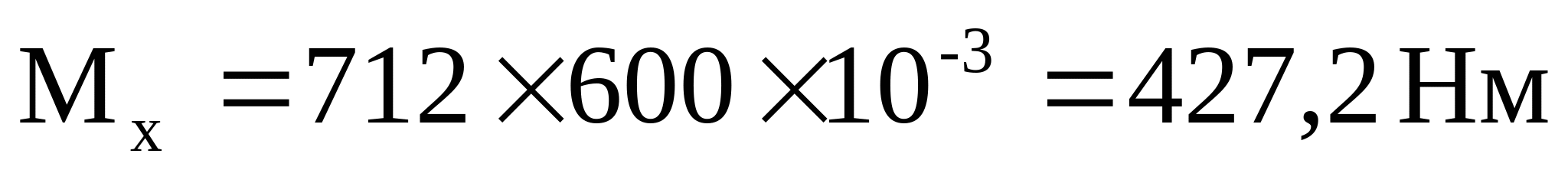 По полученным данным строим эпюры моментов, которые представлены на рисунке 4 .         Rx1 A B Rx2      Ry1 Ft Ry2       a = 600 Fr b = 220                                               My, Нм                  155,4 Mx, Нм      427,2 Рисунок 4- Эпюры моментов