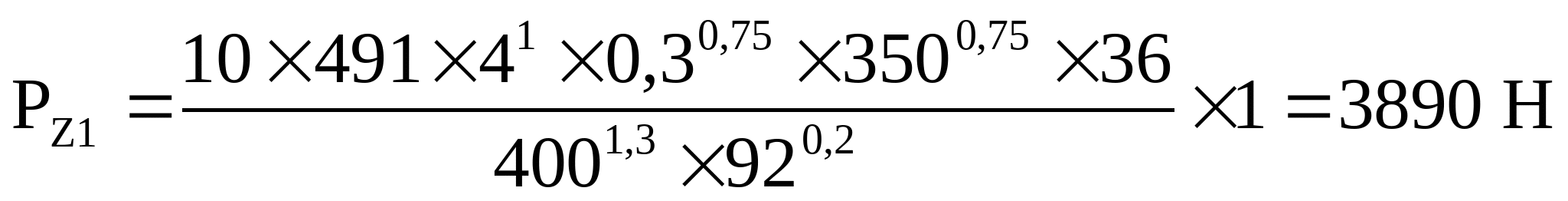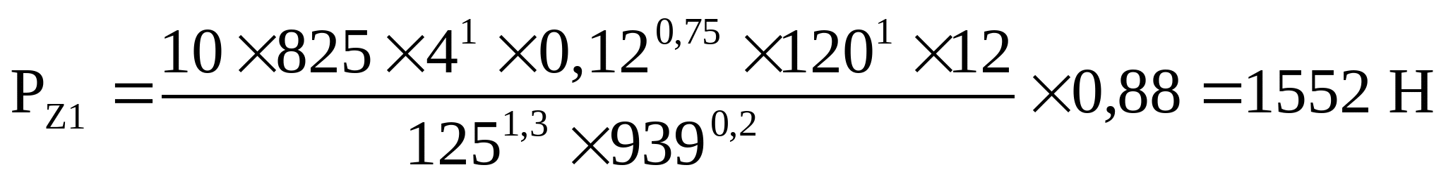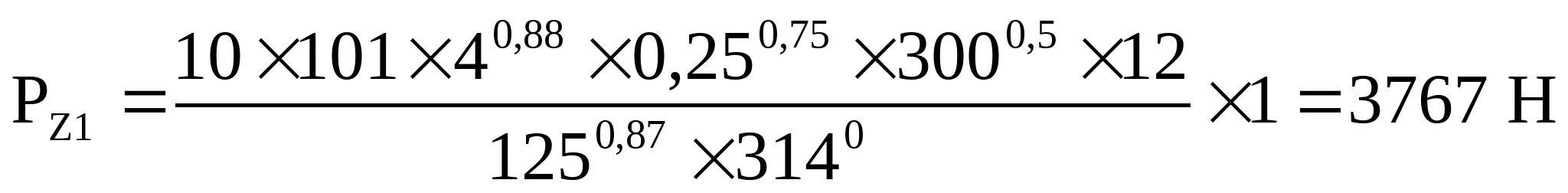 Силу резания вычисляем по формуле (1.5) ,приняв по [1] = 491; x = 1; y = 0,75; u = 0,75; q = 1,3; w = 0,2: