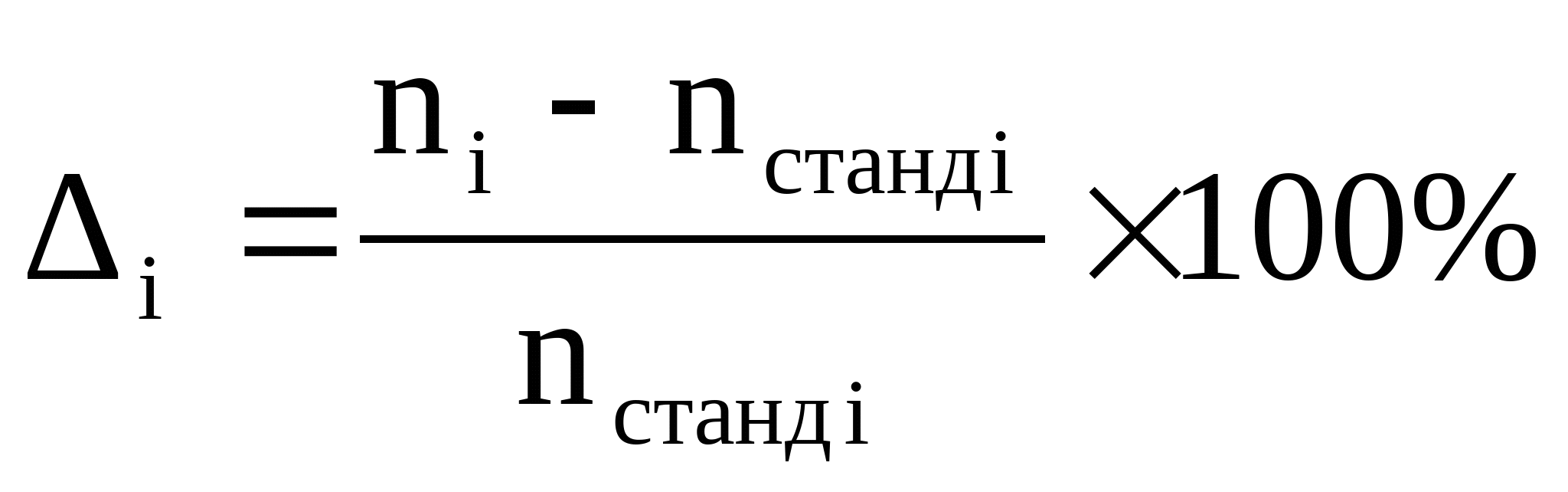 Сравниваем рассчитанные значения частот вращения шпинделя со стандартными значениями и величину отклонения между ними находим по формуле: (2.3)