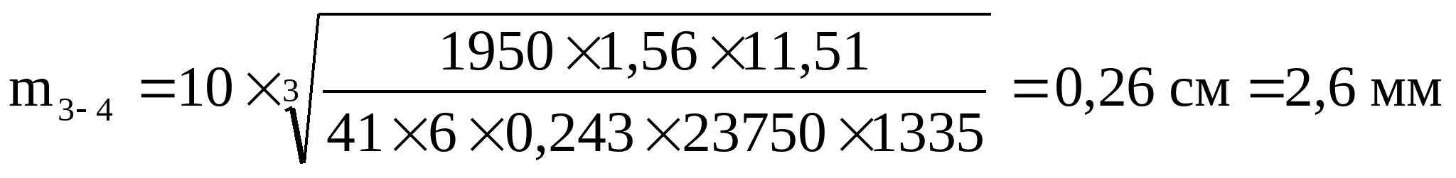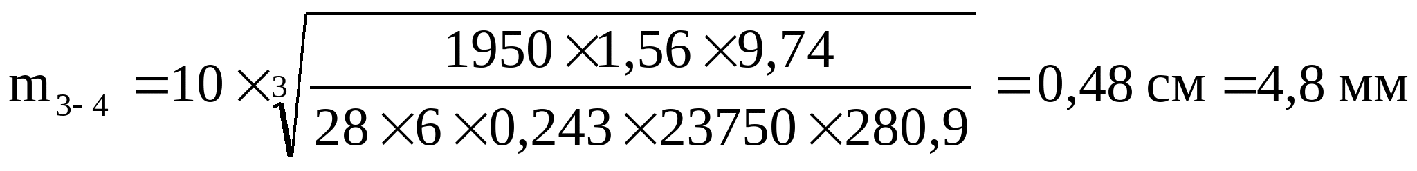 Принимаем m1-2 = m2-3 = 3 мм; m3-4 = 4 мм. Межосевое расстояние: