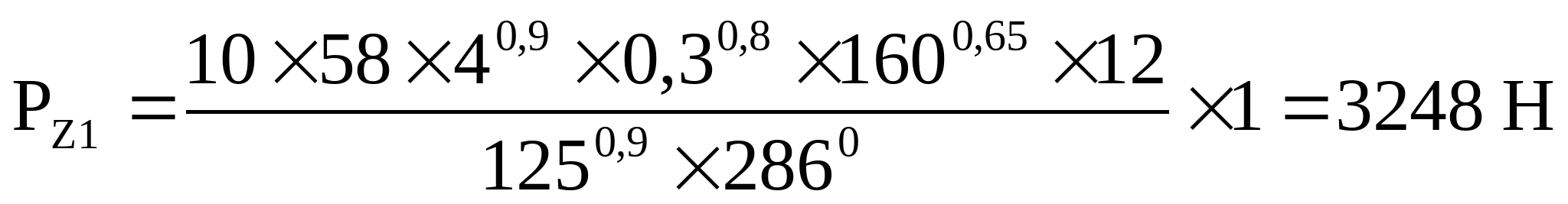Силу резания вычисляем по формуле (1.5) ,приняв по [1] = 58; x = 0,9; y = 0,8; u = 0,65; q = 0,9; w = 0: