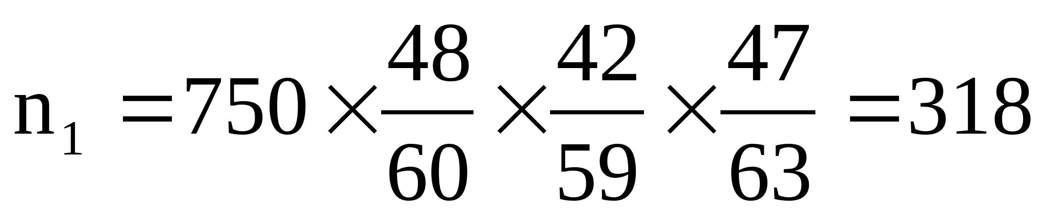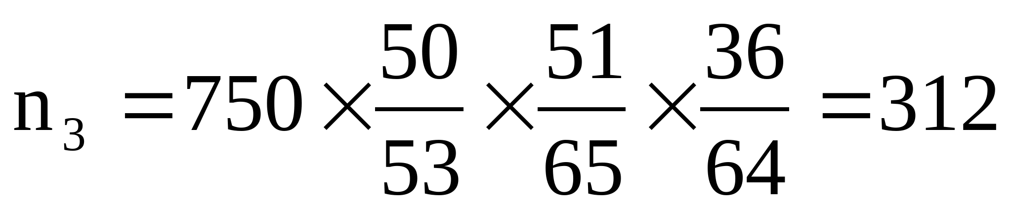 По [2] принимаем стандартное значение знаменателя ряда чисел оборотов φ = 1,06. При = 750 об/мин , = 322 об/мин по [2] записываем стандартный ряд чисел оборотов: = 315 об/мин., = 335 об/мин., = 355 об/мин., = 375 об/мин., = 400 об/мин., = 425 об/мин., = 450 об/мин., = 475 об/мин., = 500 об/мин., = 530 об/мин., = 560 об/мин., = 600 об/мин., = 630 об/мин., = 670 об/мин., = 710 об/мин., = 750 об/мин.