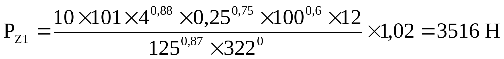 Силу резания вычисляем по формуле (1.5) ,приняв по [1] = 101; x = 0,88; y = 0,75; u = 0,6; q = 0,87; w = 0: