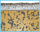 Гетерогенная структура, состоящая из мягкой легкоприрабатывающейся основы и твердых включений, способствует удержанию пленки смазки, что снижает коэффициент трения.