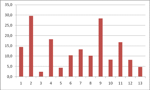 По результатам таблицы 14 можно сделать следующие выводы: Наибольшее влияние на изменение себестоимости в целом по парку оказал такой технико-экономический показатель, как списочное количество автомобилей (-16,5%). Несмотря на то, что фактическое списочное количество автомобилей увеличилось по сравнению с плановым – это увеличение снизило себестоимость перевозок. Это говорит о грамотном, эффективном использовании всего парка подвижного состава. Ну а такие показатели как время погрузки-разгрузки и коэффициент использования грузоподъемности не оказали влияния на изменение себестоимости, так как фактические значения этих показателей не изменились по сравнению с плановыми.