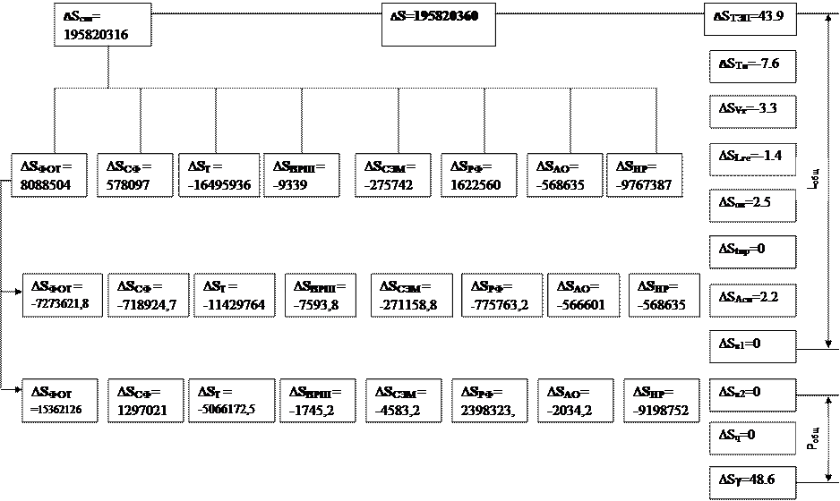 Рис. 3. Влияние ТЭП на себестоимость, изменение статей себестоимости