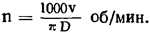Если необходимо определить число оборотов фрезы в минуту, то формула примет вид