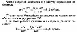 выбирается в соответствии с определенными значениями глубины резания, подачи и стойкости режущего инструмента, геометрических параметров режущей части. Скорость резания назначается по соответствующим нормативам режимов резания или подсчитывается по эмпирическим формулам.