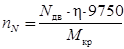 = (9750 x 6 x 0,8) / 14,8 = 46800 / 14,8 = 3162,162 об/мин.