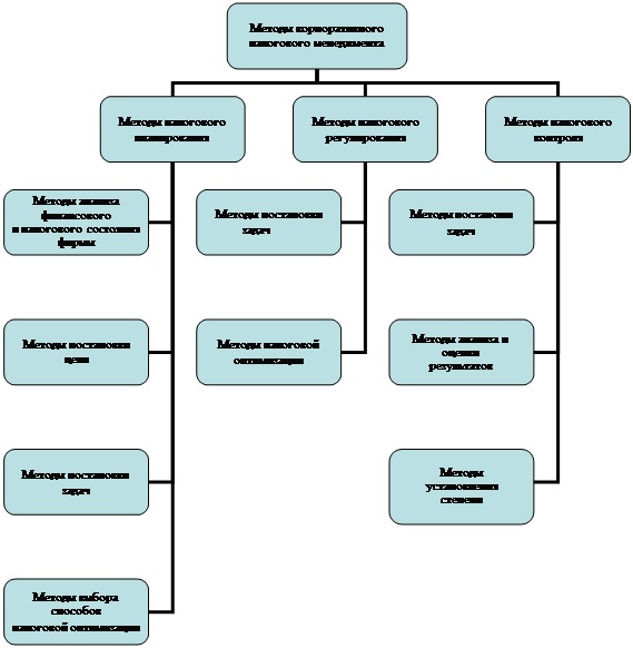 5) методы установления степени достижения цели. Систематизация данных методов обеспечивает инструментарий корпоративного налогового менеджмента.