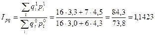 Используя в качестве соизмерителя неизменные цены, получим следующую формулу для определения общего индекса физического объема произведенной продукции