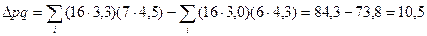 Разложим теперь эту сумму изменения по факторам. Сумма изменений средней себестоимости единицы продукции в отчетном периоде по сравнению с базисным за счет непосредственного изменения себестоимости единицы продукции: