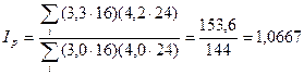 представляет собой отношение двух взвешенных средних величин с одними и теми же весами: