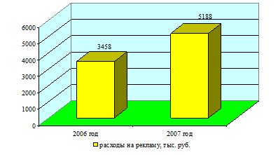 Таким образом, в 2006-2007 гг. ООО "Тимур" использовало различные средства распространения рекламы (газеты, наружную рекламу, печатную рекламу, журналы-каталоги и др.). Все это способствовало привлечению значительного числа дополнительных посетителей в бар. Общая сумма затрат организации на рекламу составила в 2007 году 5188000 руб., при этом в 2007 г. ООО "Тимур" израсходовало на рекламу практически в 1,5 раза больше средств, чем в 2006 г. (3458 тыс. руб.). В то же время несмотря на значительные затраты на рекламу, во многом слабая эффективность рекламной деятельности была обусловлена наличием ряда причин: так, изменение структуры затрат на рекламу было осуществлено "на взгляд" директора, а не на основании проведенных маркетинговых исследований, которые позволили бы выявить растущую эффективность одних средств распространения рекламы и снижающуюся эффективность других; отсутствовал научный подход к организации рекламной деятельности организации, что объясняется отсутствием в штате отдельного сотрудника, в функции которого входила бы организация рекламной деятельности. Таким образом, очевидно, что ООО "Тимур" необходимо совершенствовать рекламную деятельность. Основные пути работы организации в данном направлении будут изложены в следующей главе курсовой работы.