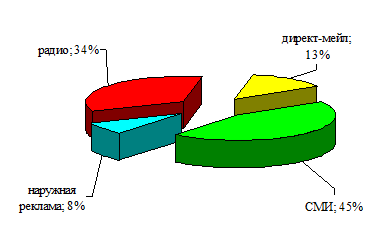 Рис.5. Структура рекламных средств ООО "Тимур" в 2007 г.