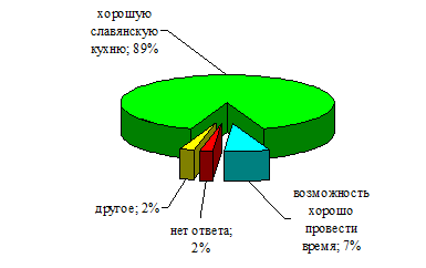 Данный вопрос позволяет определить, насколько эффективно креативное решение, заложенное в рекламе. Так как отсутствует рекламный слоган организации, все респонденты называли непосредственно услуги бара как типичной организации общественного питания, следовательно, креативный подход к выполнению данной рекламы можно оценить, как "неудовлетворительный".