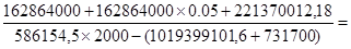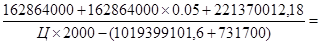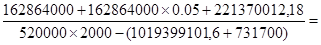 = (520000 х 2000 – 1019399101,6 – 731700) / 1019399101,6 = 2%