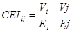 где Vi и Vj - объем продаж фирм i и j соответственно за некоторый период времени, а Ei и Ej объем затрат на рекламу этих фирм за тот же период.
