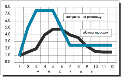 Если начальный объем рекламы был 2000 USD в месяц, а объем реализации 50 тыс. USD/мес., то экономическая целесообразность активизации рекламных усилий очевидна. Дополнительные 70-75 тыс. USD/год, вложенные в рекламу, позволили фирме увеличить объем реализации на 900 тыс. USD/год.
