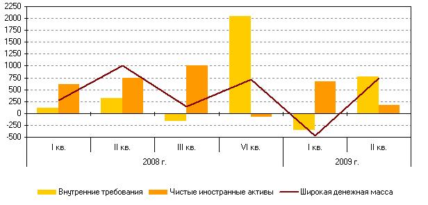 Рис. 5 Основные источники измерения денежной массы в 2008-2009 гг. (прирост за квартал, млрд. руб.).