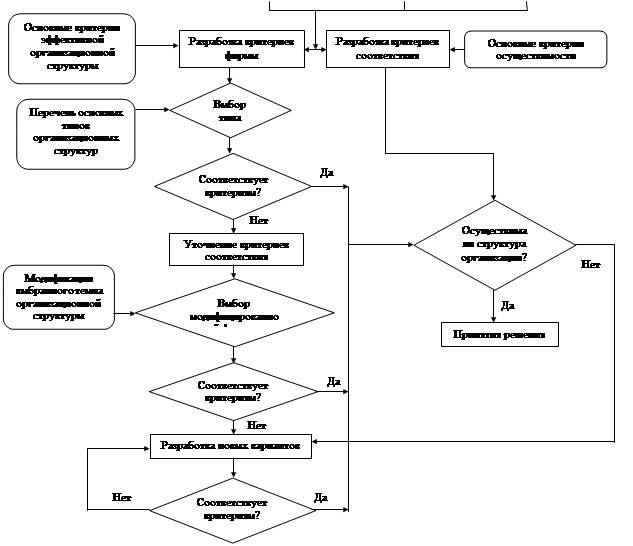 На основе анализа требований, предъявляемых к организационным структурам управления, к сформулированной стратегии, результатам анализа внешней среды, можно разработать специальные критерии для определения структуры фирмы, упорядочения всех возможных структур в порядке их приоритетности и выбора структуры, в наибольшей степени соответствующей разработанным критериям.