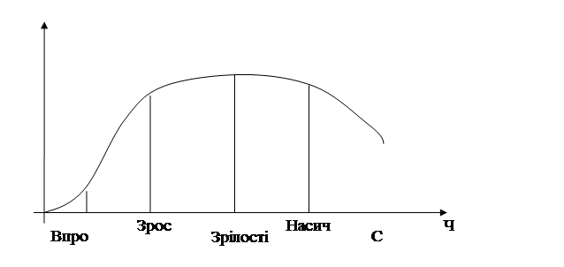 Життєвий цикл товару і його стадії можна зобразити графічно. Для цього на осі X відкладемо час, а на осі У - об'єм продажу товару в даний момент часу (рис. 1)