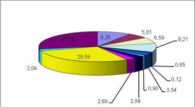 Вторым разделом, доля которого составляет 11,24% от общей суммы расходов, являются общегосударственные вопросы. В динамике мы видим, что этот показатель в процентном соотношении снижается. Прогнозируется, что в 2011 году сумма расходов составит 1 135,45 млрд. руб., что уменьшится по отношению к запланированному в 2009 году на 7,83 млрд. руб. . К основным подразделам можно отнести бюджетные ассигнования на судебную систему, обеспечение деятельности финансовых, налоговых и таможенных органов и органов надзора, обслуживание государственного и муниципального долга и другие общегосударственные вопросы. Непосредственно увеличение заработной платы госслужащим (депутатам и их помощникам, судьям, увеличением компенсационных вознаграждений присяжным и арбитражным заседателям, помощников судей арбитражных судов, секретарей судебных заседаний арбитражных судов и т.д.), проведение капитального ремонта административных зданий, обеспечение деятельности Счетной палаты Российской Федерации. И таких ассигнований в каждом подразделе очень много, что свидетельствует о росте этого показателя в целом.