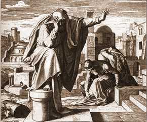 Два человека вошли в храм помолиться: один фарисей, а другой мытарь. Фарисей, став, молился сам в себе так: Боже! благодарю Тебя, что я не таков, как прочие люди, грабители, обидчики, прелюбодеи, или как этот мытарь: пощусь два раза в неделю, даю десятую часть из всего, что приобретаю. Мытарь же, стоя вдали, не смел даже поднять глаз на небо; но, ударяя себя в грудь, говорил: Боже! будь милостив ко мне грешнику! Сказываю вам, что сей пошёл оправданным в дом свой более, нежели тот: ибо всякий, возвышающий сам себя, унижен будет, а унижающий себя возвысится.
