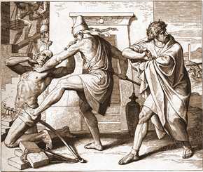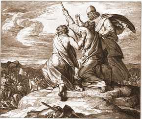И сказал Каин Авелю, брату своему: [пойдём в поле]. И когда они были в поле, восстал Каин на Авеля, брата своего, и убил его. И сказал Господь [Бог] Каину: где Авель, брат твой? Он сказал: не знаю; разве я сторож брату моему? И сказал [Господь]: что ты сделал? голос крови брата твоего вопиет ко Мне от земли; и ныне проклят ты от земли, которая отверзла уста свои принять кровь брата твоего от руки твоей; когда ты будешь возделывать землю, она не станет более давать силы своей для тебя; ты будешь изгнанником и скитальцем на земле. И сказал Каин Господу [Богу]: наказание мое больше, нежели снести можно.