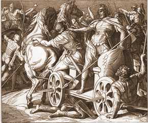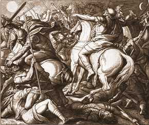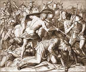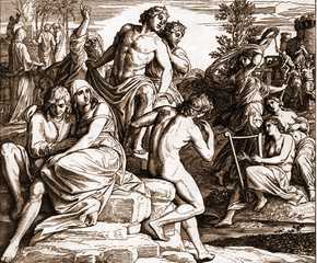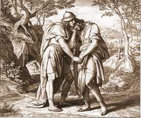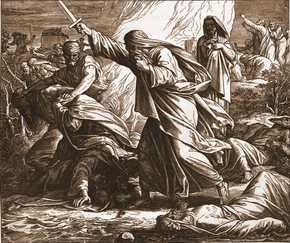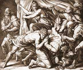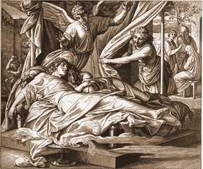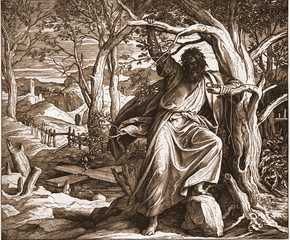 И остался Иаков один. И боролся Некто с ним до появления зари; и, увидев, что не одолевает его, коснулся состава бедра его и повредил состав бедра у Иакова, когда он боролся с Ним. И сказал [ему]: отпусти Меня, ибо взошла заря. Иаков сказал: не отпущу Тебя, пока не благословишь меня. И сказал: как имя твое? Он сказал: Иаков. И сказал [ему]: отныне имя тебе будет не Иаков, а Израиль, ибо ты боролся с Богом, и человеков одолевать будешь. Спросил и Иаков, говоря: скажи [мне] имя Твоё. И Он сказал: на что ты спрашиваешь о имени Моём? [оно чудно.] И благословил его там. И нарёк Иаков имя месту тому: Пенуэл; ибо, говорил он, я видел Бога лицом к лицу, и сохранилась душа моя.