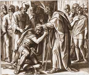 Когда он возвращался после поражения Кедорлаомера и царей, бывших с ним, царь Содомский вышел ему навстречу в долину Шаве, что ныне долина царская; и Мелхиседек, царь Салимский, вынес хлеб и вино, – он был священник Бога Всевышнего, – и благословил его, и сказал: благословен Аврам от Бога Всевышнего, Владыки неба и земли; и благословен Бог Всевышний, Который предал врагов твоих в руки твои. [Аврам] дал ему десятую часть из всего.