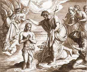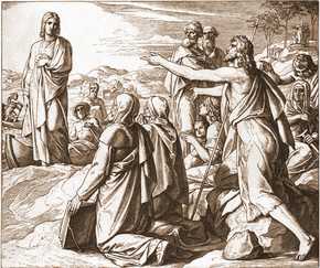На другой день видит Иоанн идущего к нему Иисуса и говорит: вот Агнец Божий, Который берёт на Себя грех мира. Сей есть, о Котором я сказал: за мною идёт Муж, Который стал впереди меня, потому что Он был прежде меня. Я не знал Его; но для того пришёл крестить в воде, чтобы Он явлен был Израилю. И свидетельствовал Иоанн, говоря: я видел Духа, сходящего с неба, как голубя, и пребывающего на Нём. Я не знал Его; но Пославший меня крестить в воде сказал мне: на Кого увидишь Духа сходящего и пребывающего на Нём, Тот есть крестящий Духом Святым. И я видел и засвидетельствовал, что Сей есть Сын Божий. На другой день опять стоял Иоанн и двое из учеников его. И, увидев идущего Иисуса, сказал: вот Агнец Божий.