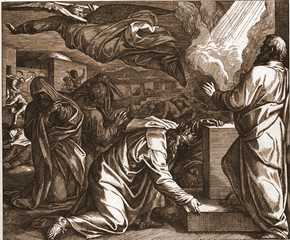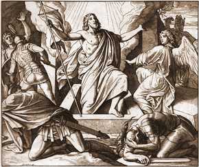 Иисус говорит: отнимите камень. Сестра умершего, Марфа, говорит Ему: Господи! уже смердит; ибо четыре дня, как он во гробе. Иисус говорит ей: не сказал ли Я тебе, что, если будешь веровать, увидишь славу Божию? Итак отняли камень от пещеры, где лежал умерший. Иисус же возвел очи к небу и сказал: Отче! благодарю Тебя, что Ты услышал Меня. Я и знал, что Ты всегда услышишь Меня: но сказал сие для народа, здесь стоящего, чтобы поверили, что Ты послал Меня. Сказав это, Он воззвал громким голосом: Лазарь! иди вон. И вышел умерший, обвитый по рукам и ногам погребальными пеленами, и лицо его обвязано было платком. Иисус говорит им: развяжите его, пусть идёт.