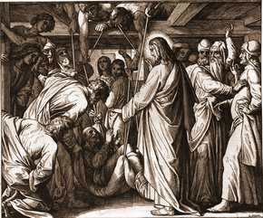 В один день, когда Он учил, и сидели тут фарисеи и законоучители, пришедшие из всех мест Галилеи и Иудеи и из Иерусалима, и сила Господня являлась в исцелении больных, – вот, принесли некоторые на постели человека, который был расслаблен, и старались внести его в дом и положить перед Иисусом; и, не найдя, где пронести его за многолюдством, влезли на верх дома и сквозь кровлю спустили его с постелью на средину пред Иисуса. И Он, видя веру их, сказал человеку тому: прощаются тебе грехи твои. Книжники и фарисеи начали рассуждать, говоря: кто это, который богохульствует? кто может прощать грехи, кроме одного Бога? Иисус, уразумев помышления их, сказал им в ответ: что вы помышляете в сердцах ваших? Что легче сказать: прощаются тебе грехи твои или сказать: встань и ходи? Но чтобы вы знали, что Сын Человеческий имеет власть на земле прощать грехи, – сказал Он расслабленному: тебе говорю: встань, возьми постель твою и иди в дом твой. И он тотчас встал перед ними, взял, на чём лежал, и пошёл в дом свой, славя Бога.