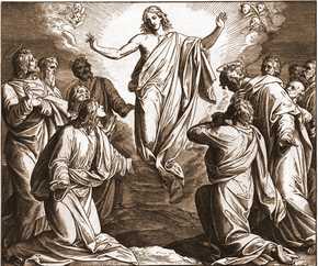 И вывел их вон из города до Вифании и, подняв руки Свои, благословил их. И, когда благословлял их, стал отдаляться от них и возноситься на небо. Они поклонились Ему и возвратились в Иерусалим с великою радостью.